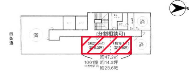 【京都市下京区の貸事務所】 ●京都四条烏丸のオフィスビル、四条通り面す● もともとワンフロアだった区画を分割し、賃貸しやすくした貸事務所区画です。 四条通りに面した区画で、魅力十分。駅からも近く便利な立地ですし、使い勝手も抜群です。 小規模オフィスが少なくなってきている中で魅力あるオフィスですので、ご検討下さい。